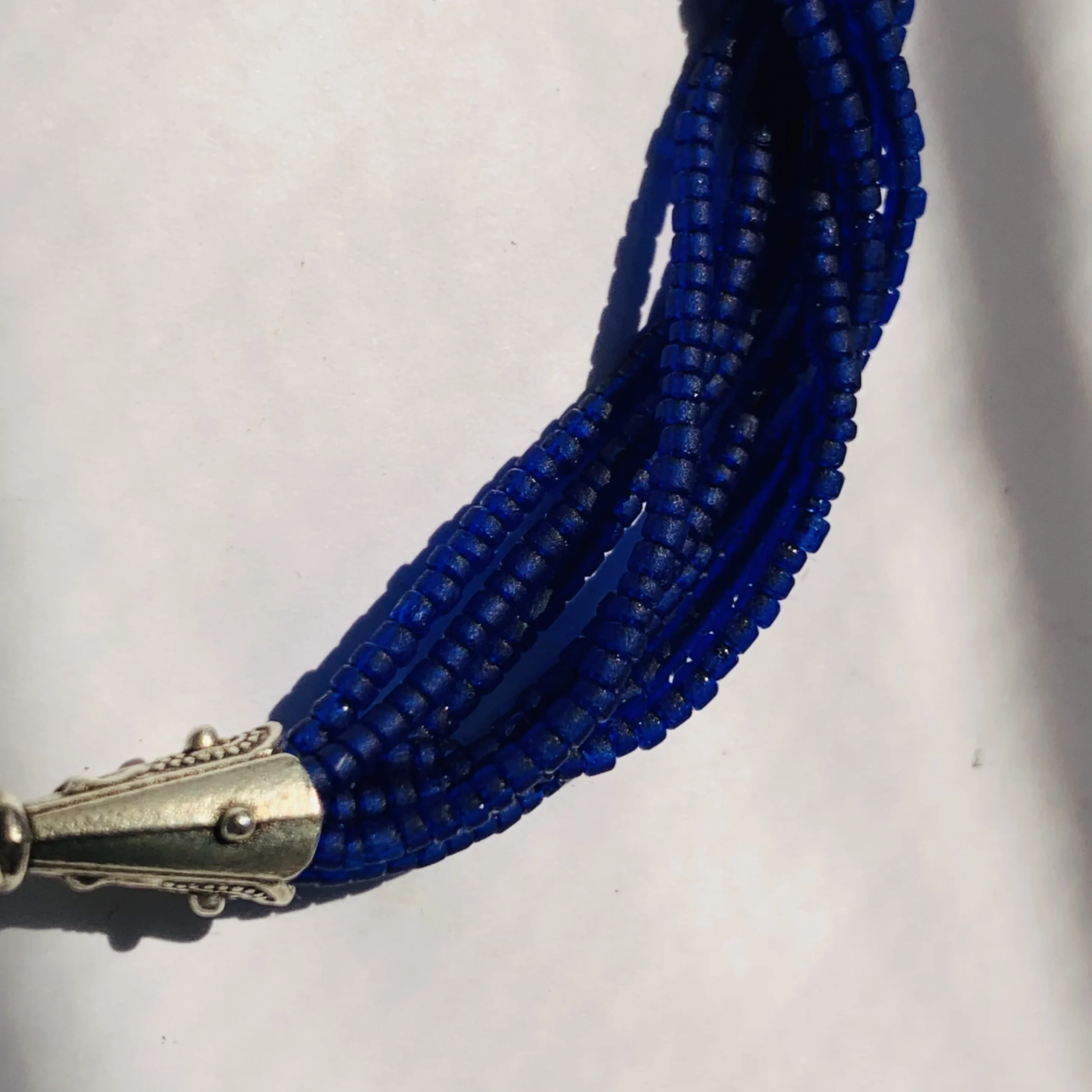 Afghan Lapis Lazuli Multi-Strand Bracelet – Deep Blue Beads with Oval Stone Centerpiece