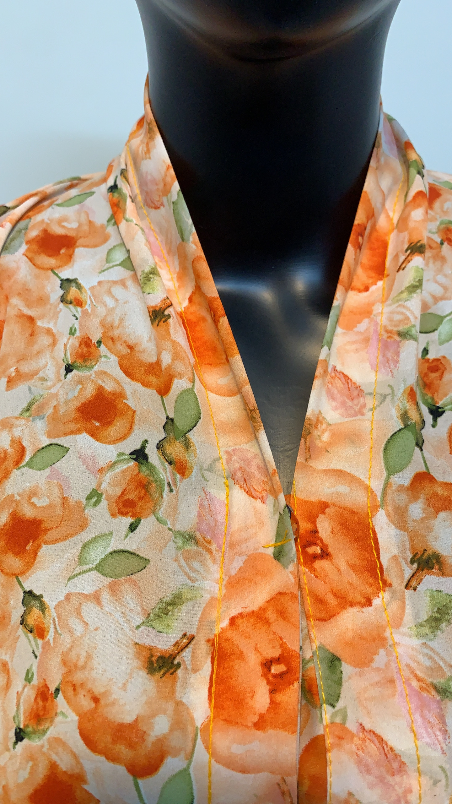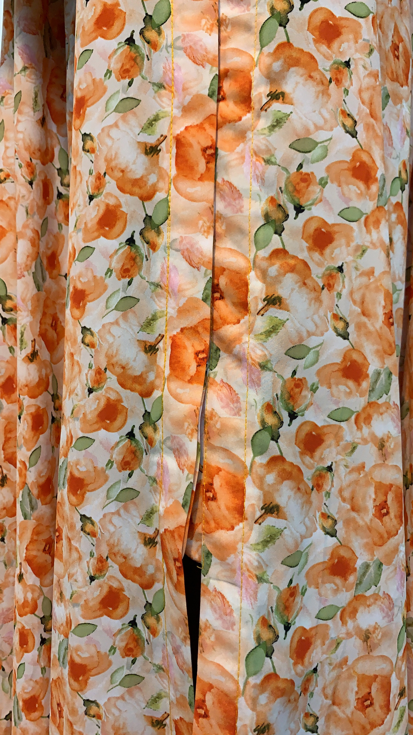 The Citrus Bloom – Vintage Floral Abaya captures the essence of springtime charm through a nostalgic yet fresh design. Set on a soft cream or white base, this open-front abaya blooms with scattered apricot-orange roses and leafy green accents, forming a tapestry-like floral print that feels both romantic and vintage-inspired. The densely placed rose motifs evoke the feel of classic botanical wallpapers, lending the piece a timeless elegance that’s grounded in nature.