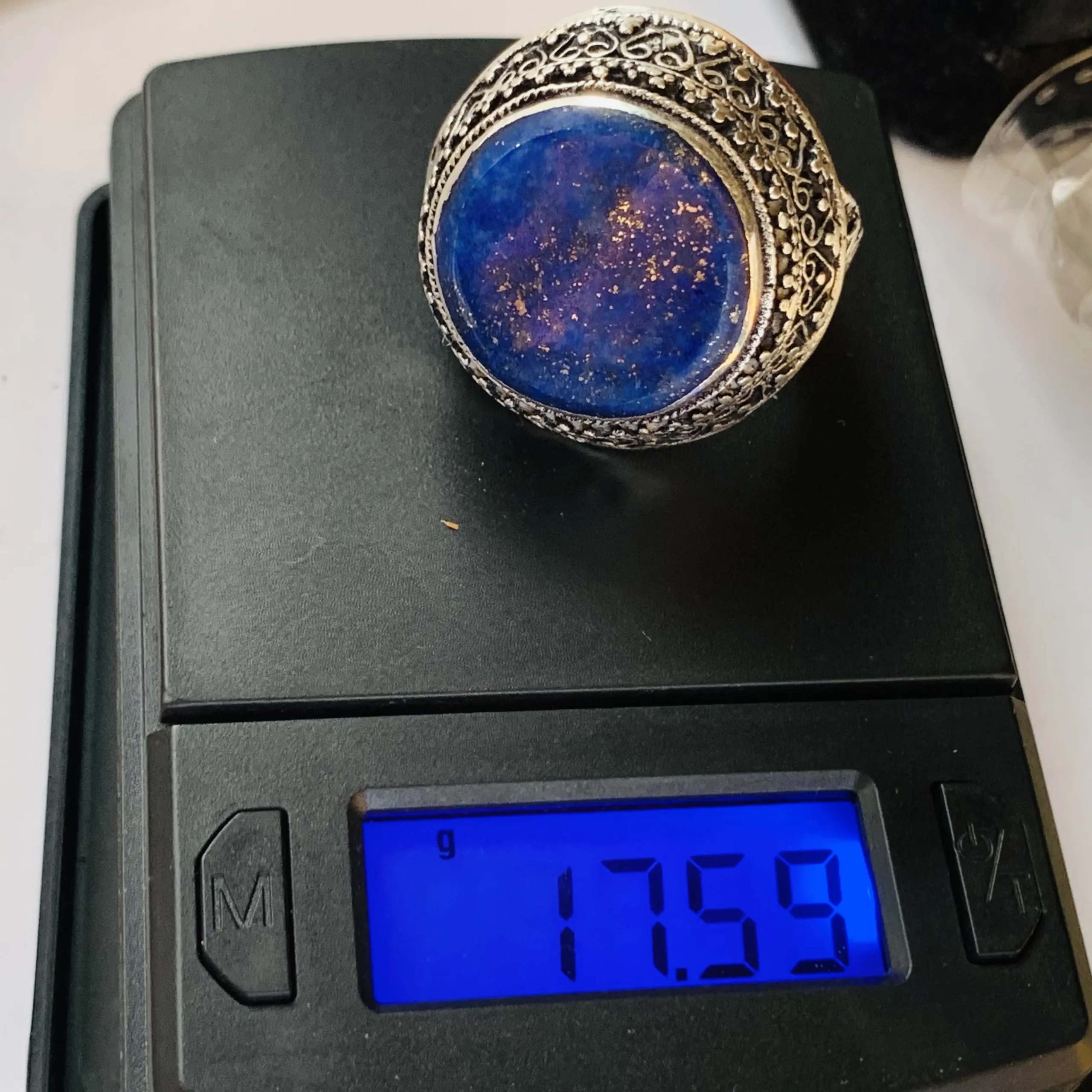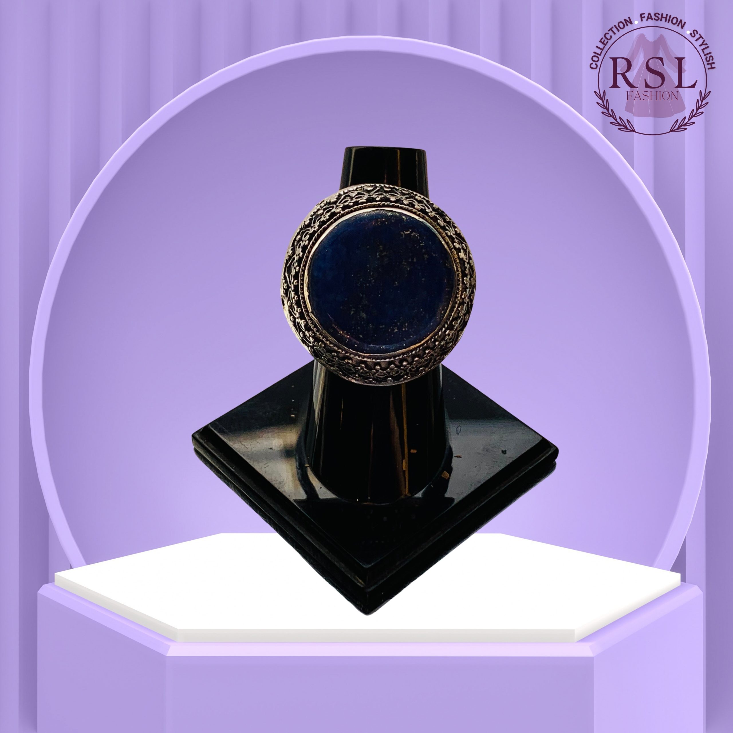 A bold Afghan ring featuring a deep dark blue round stone, encased in a detailed antique-style frame—rich in tradition and handcrafted elegance.