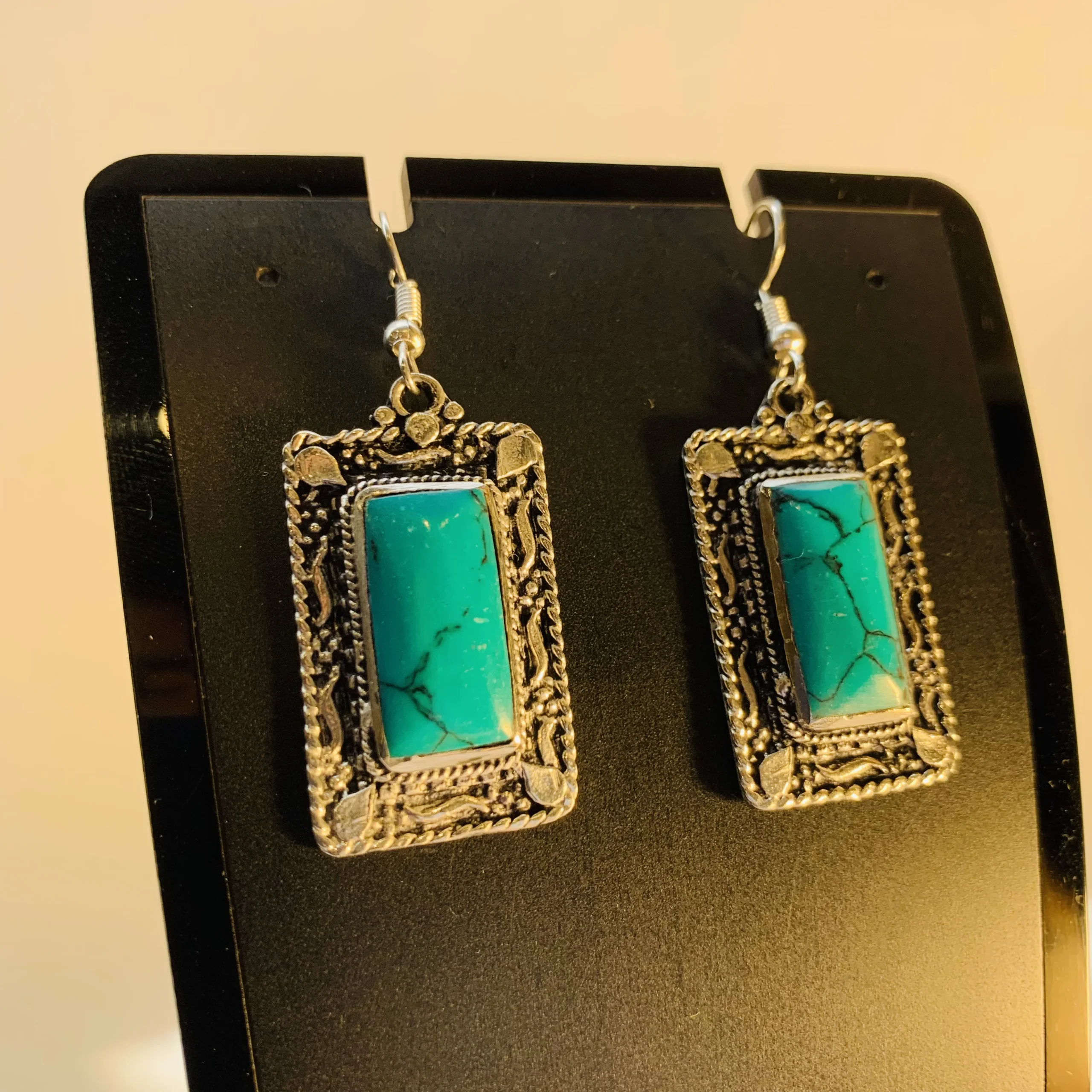 Turquoise Stone & Gold Metal Rectangle Earrings